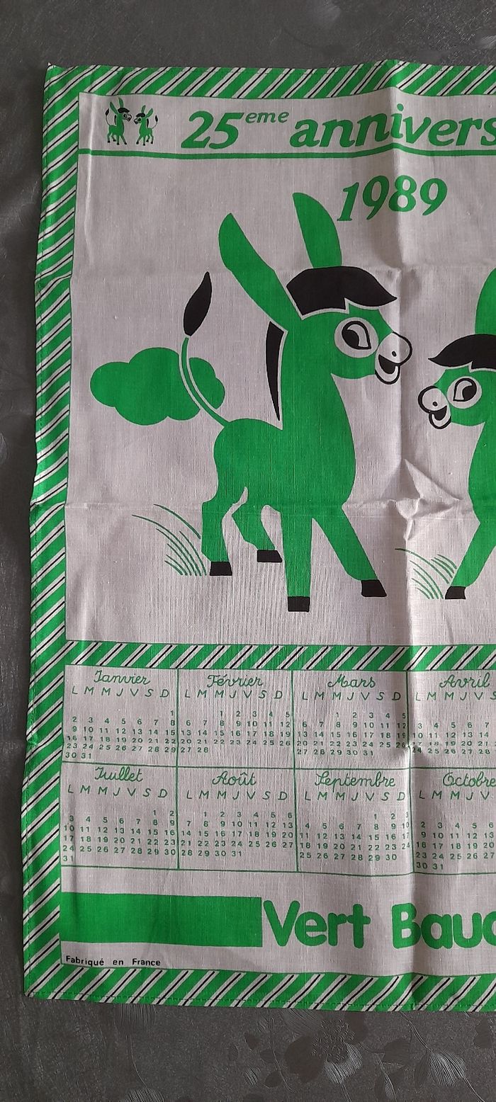 Torchon calendrier 1989. Le 25ème anniversaire de VERT BAUDET 100 % coton Fabrication française Très rare