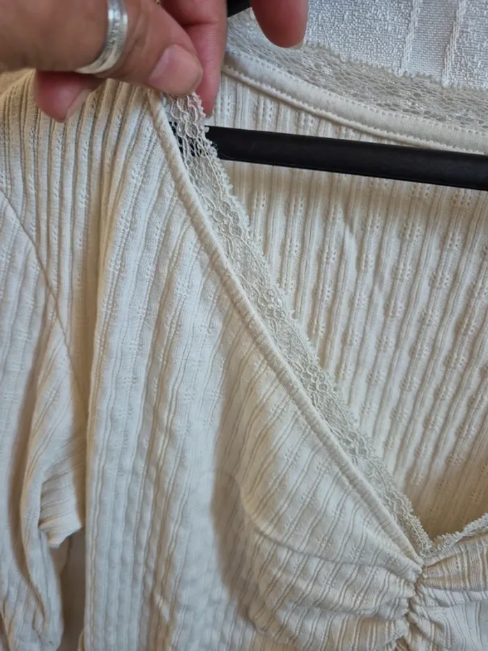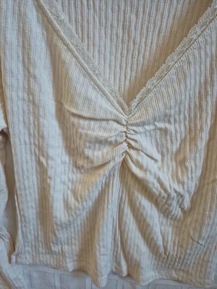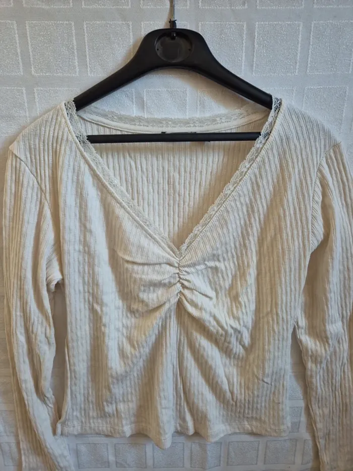 ⬇️mes autres annonces pour femme en taille 42 👉 #cg89femme42 ⬇️mes autres annonces pour femme en taille 44 👉 #cg89femme44 un tshirt manche longue avec un col "V" et de la broderie sur le tour. il mesure 44 cm aux aisselles et 53 cm de longueur. très bon état - taille 42 - taille 44 - marque kiabi #tshirt #manchelongue #kiabi #sweat #blouse