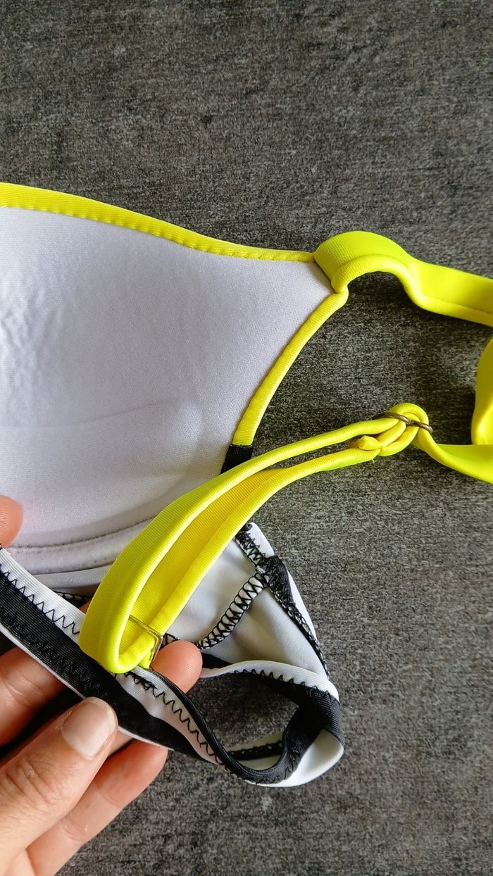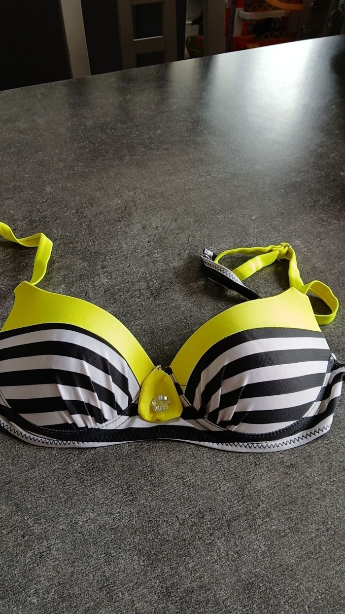 Maillot de bain deux pièces, avec bretelles réglables, taille M. Soutien gorge avec rembourrage. Un crochet comme fermeture.tres bon état