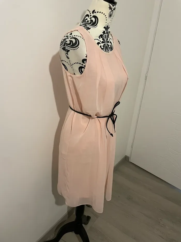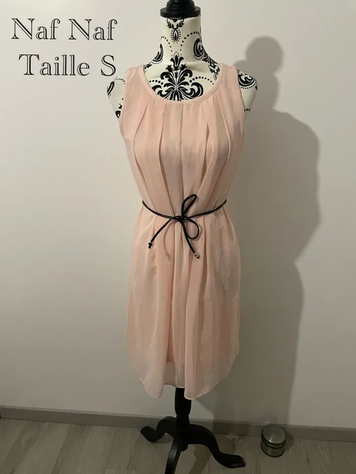Sublime robe Naf Naf couleur rose poudré, parfaite pour l’été ou une occasion spéciale 💕 • Taille : S • Coupe fluide et élégante avec de jolis plis sur le devant • Ceinture fine noire incluse pour marquer la taille • Tissu léger et agréable à porter • Portée une seule fois — état impeccable 📸 Visible sur mannequin pour mieux voir le tombé 🚭 Maison non fumeur 🧼 Article propre et prêt à être expédié ✨ N’hésitez pas à me contacter pour toute question ou photo supplémentaire. 📦 Envoi rapide & soigné !