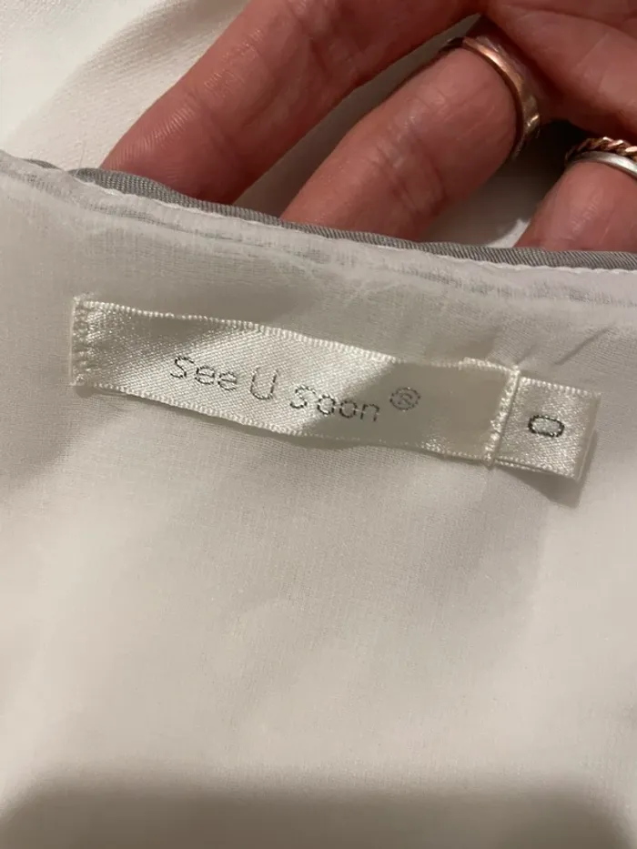 Jolie robe fluide de la marque See U Soon, couleur blanc et gris, idéale pour le printemps ou l’été ☀️ Coupe ajustée, sans manches, ceinture torsadée doré, col V. Taille XS – convient à un 34. ✔️ Très bon état, très peu porté ✔️ Confortable et facile à porter ✔️ Tissu léger et agréable 📦 Envoi rapide et soigné 💬 N’hésite pas si tu as des questions ! 🛍️ Possibilité de faire un lot