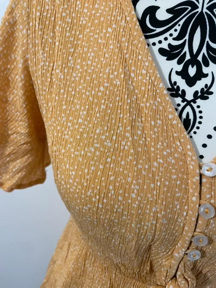 Robe Abercrombie & Fitch jaune moutarde à motifs blanc - photo numéro 1