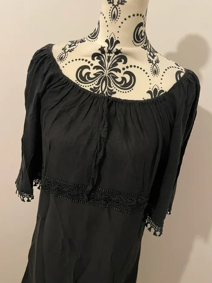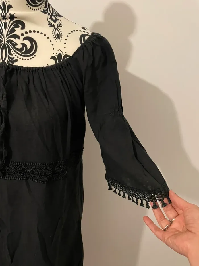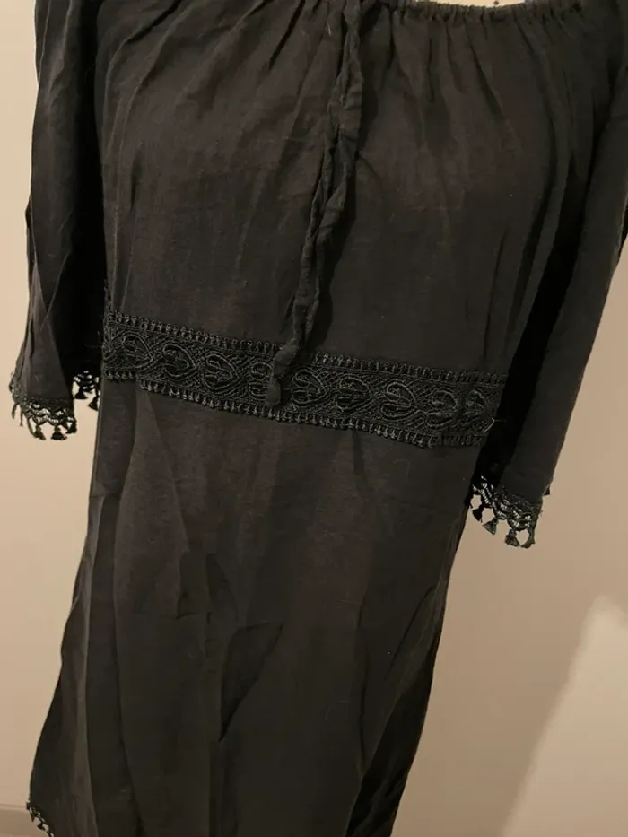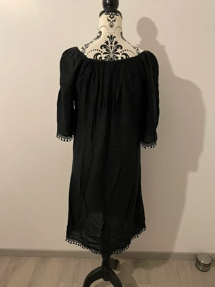 Jolie robe fluide de la marque ligne kiwi St Tropez, couleur bleu marine, idéale pour le printemps ou l’été ☀️ Coupe droite, manches 3/4, dentelle broderie anglaise crochet manche, taille et bas, doublure idéal pour une tenue décontracté style sortie de la plage. Taille 36 – convient à un S. ✔️ Très bon état, très peu porté ✔️ Confortable et facile à porter ✔️ Tissu léger et agréable 📦 Envoi rapide et soigné 💬 N’hésite pas si tu as des questions ! 🛍️ Possibilité de faire un lot