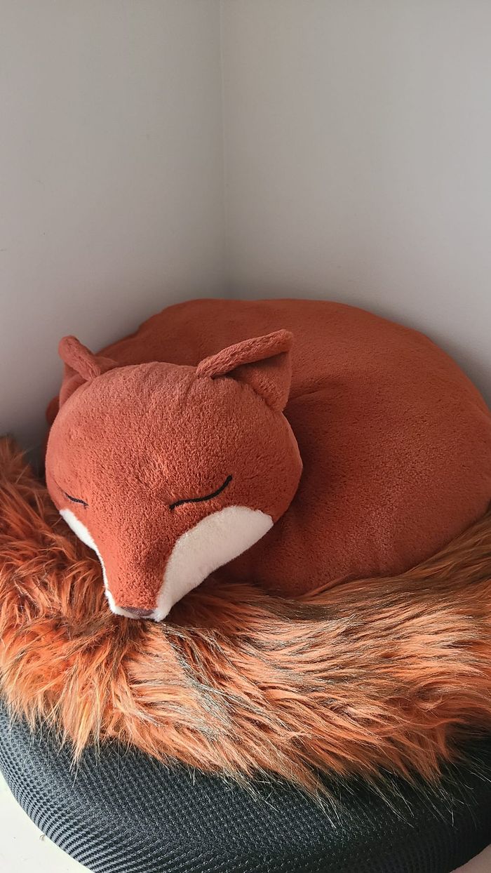 Neuf sans l’étiquette carton 38cm ø Coussin peluche doudou Renard endormi