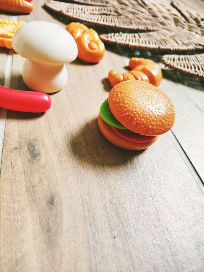 🥪 Dinette lot de divers aliments hamburger, légumes et viennoiseries en plastique PL125