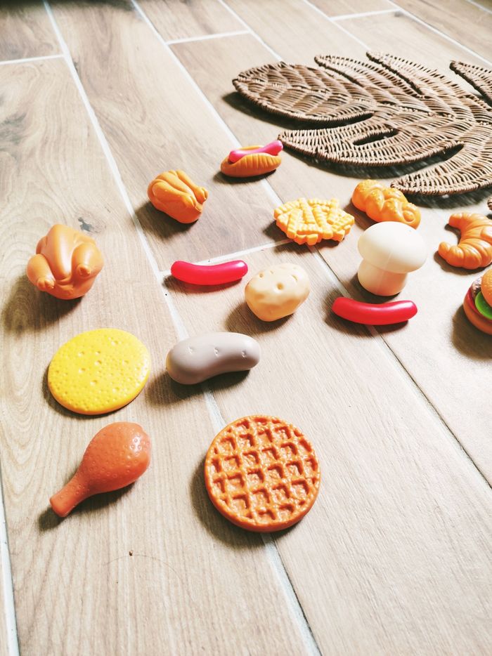🎀Avec divers aliments . : croissant, tomate, feuilles de salade, humburger ainsi que hot dog, cuisse de poulet...