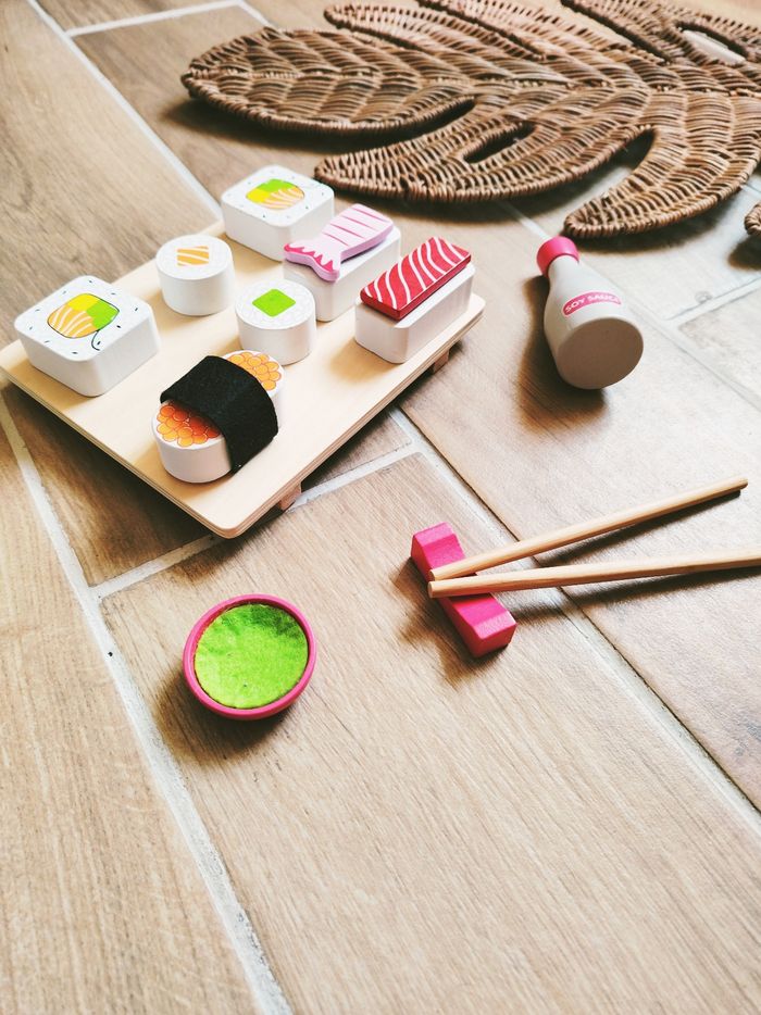 🥢Dinette plateau japonais avec sushis à scratch makis en bois JB1656