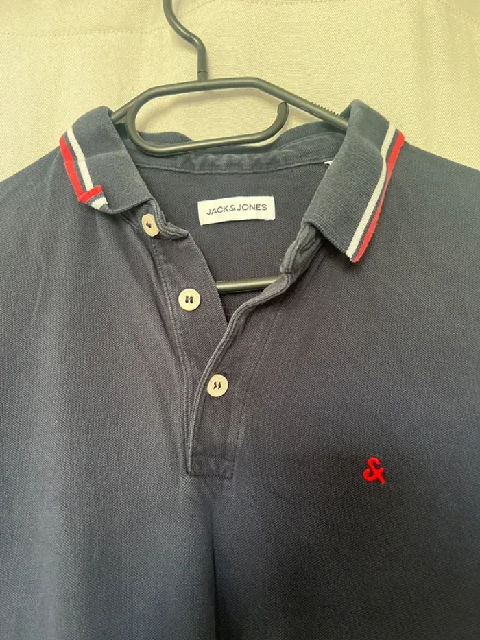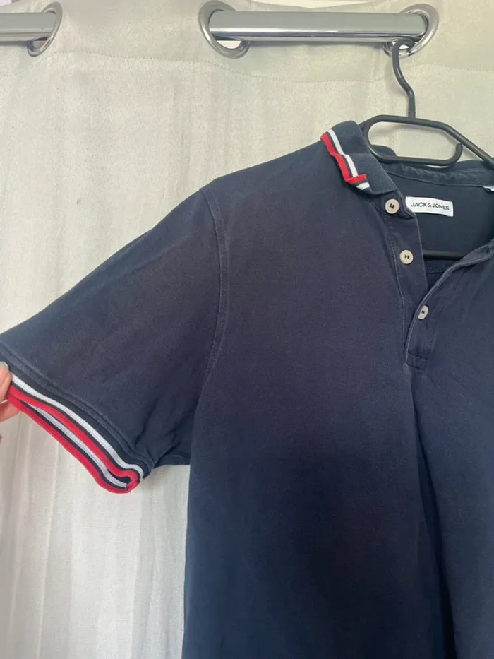 Polo jack & jones taille L Bleu avec liserer rouge et blanc et logo en rouge