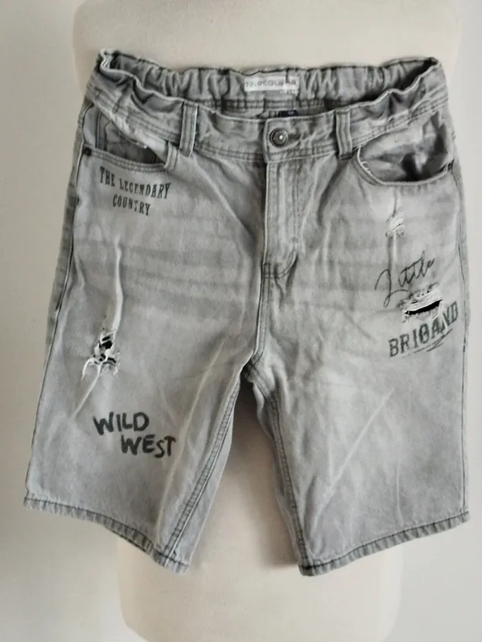 Bermuda en jean troué gris Kiabi taille 12 ans - photo numéro 1