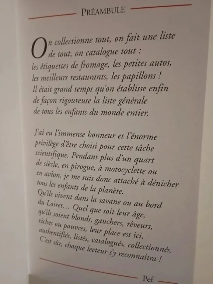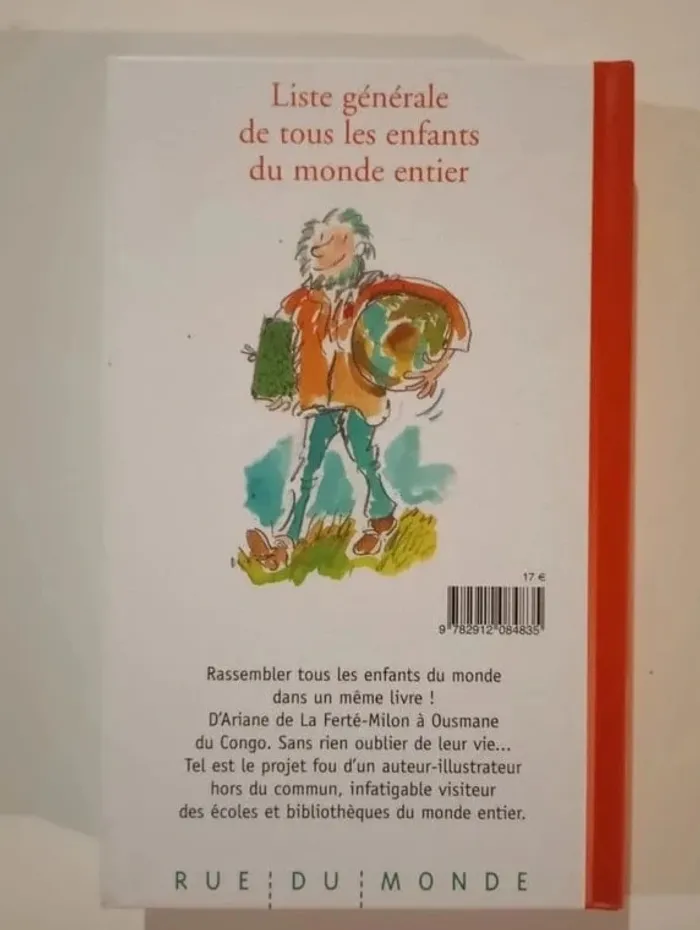 Rassembler tous les enfants du monde dans un même livre ! D'Ariane de La Ferté-Milon à Ousmane du Congo. Sans rien oublier de leur vie... Tel est le projet fou d'un auteur-illustrateur hors du commun, infatigable visiteur des écoles et bibliothèques du monde entier. Éditeur ‏ : ‎ Rue du Monde 168 pages Âge de lecture ‏ : ‎ 6 - 9 ans Dimensions ‏ : ‎ 13.7 x 2.2 x 22 cm Prix éditeur : 17€ Livre NEUF Je vends d'autres livres de la collection Rue du Monde #phil_peg_ruedumonde ou de Pef #pef #ruedumonde