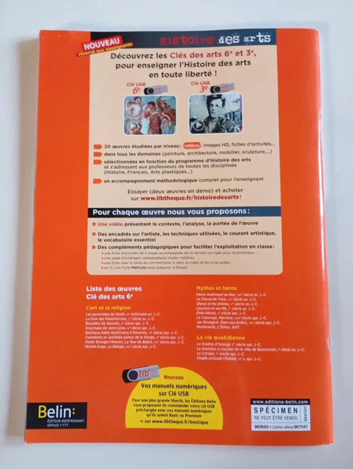 Version corrigée! Ce cahier propose des textes accompagnés de questions, des cartes à compléter, des images à observer, etc., autour des thèmes du programme de la classe de sixième. Editeur : Belin (2013) 67 pages Dimensions : 21 x 29 cm Livre NEUF (Specimen) Je vends d'autres livres scolaires #phil_peg_livrescolaire #histoiregéograpgieemc #manuelscolaire #6e #collège #cycle3