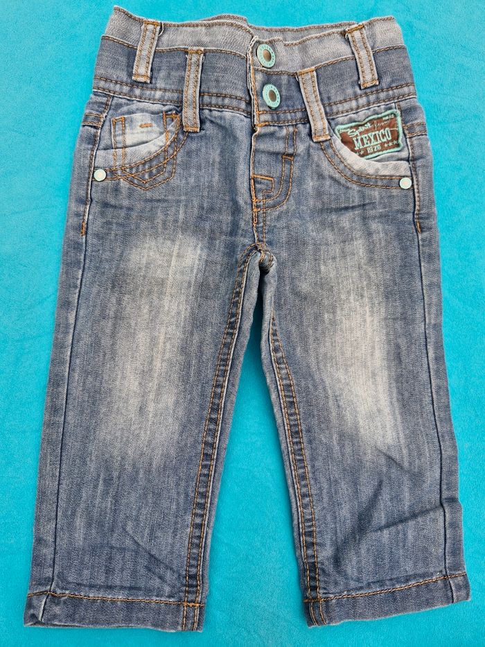 Pantalon en jean garçon 👦 Taille 6 mois Marque Tape à l'œil Réglable à la taille Couleur bleu clair style délavé