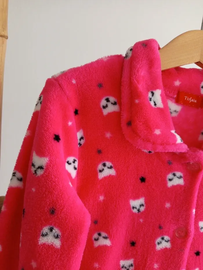 Peignoir polaire tout doux rose motifs petits chats 8 ans