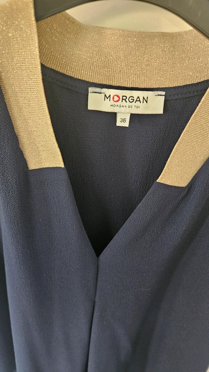 Blouse bleu marine et doré, taille 36, Morgan - photo numéro 3