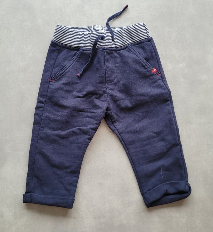 Jogging de couleur marine, de la marque Obaibi, taille 9 mois (71 cm), en très bon état. Article lavé pour la vente.