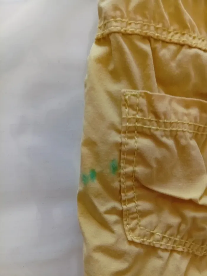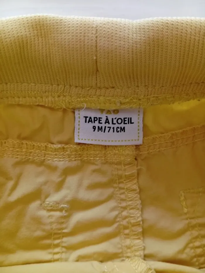 Short taille 9mois 71 CM, de la marque Tape à l'œil, tache sur le coté gauche vers la poche ( surement de l'encre que je n'ai pas réussi a faire partir )