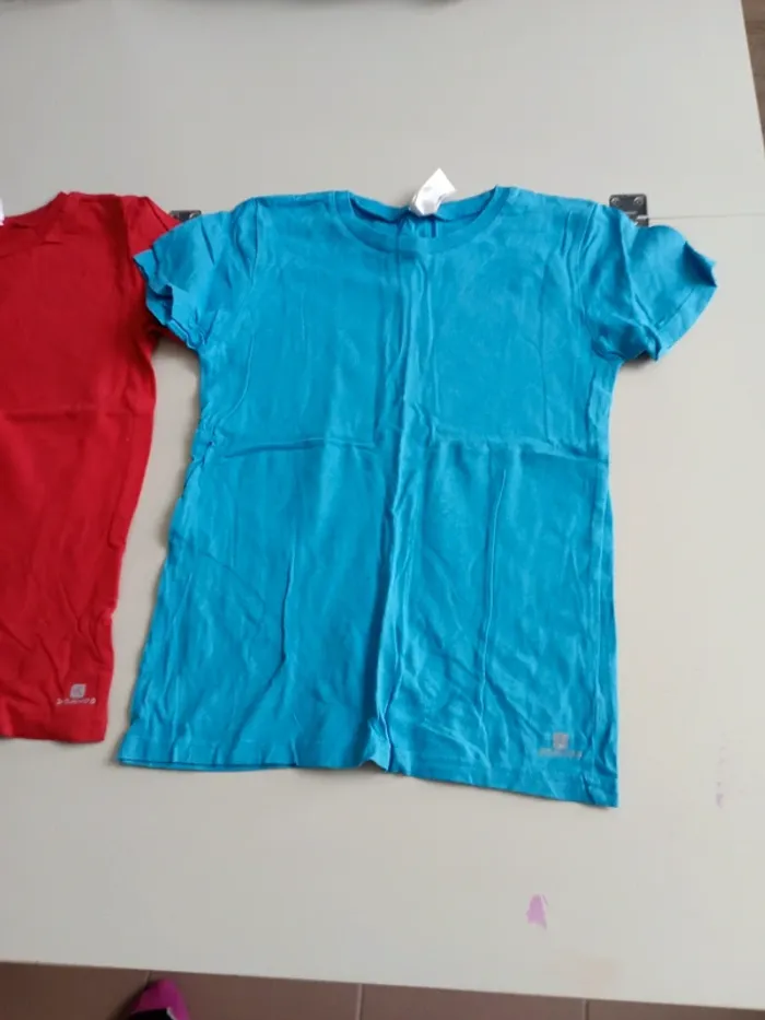 Lot de deux t-shirt manches courtes 8 ans Domyos Decathlon bleu et rouge