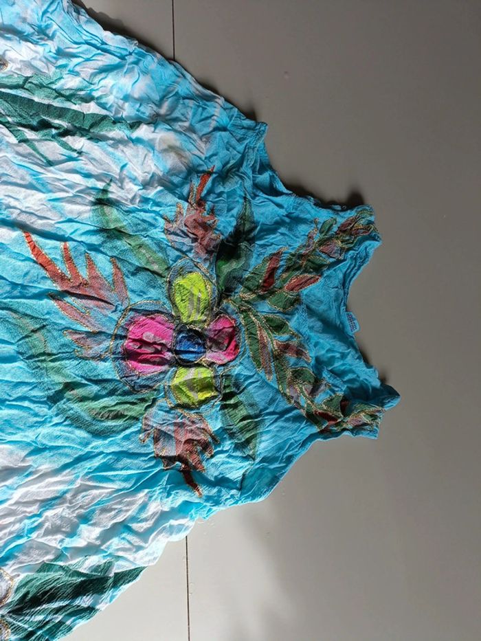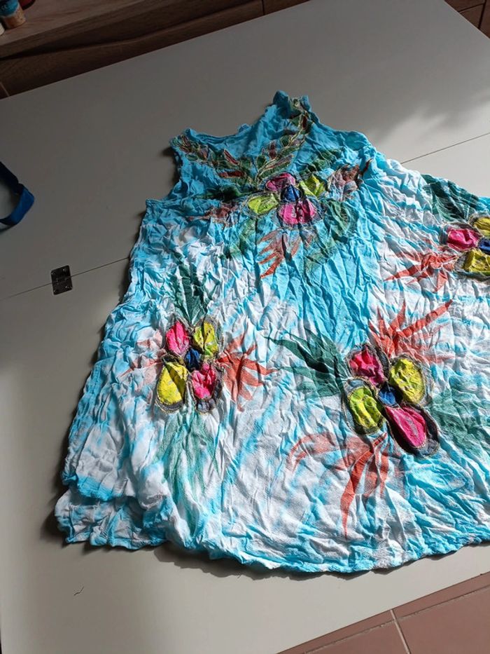 Robe d'été bleu ciel  fleurs taille unique - photo numéro 2