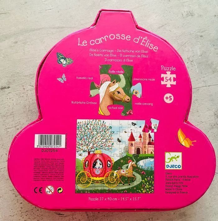 Puzzle « le carrosse d’Elise » Âge 5+ 54 pièces Marque DJECO puzzle complet dans la boite d’origine