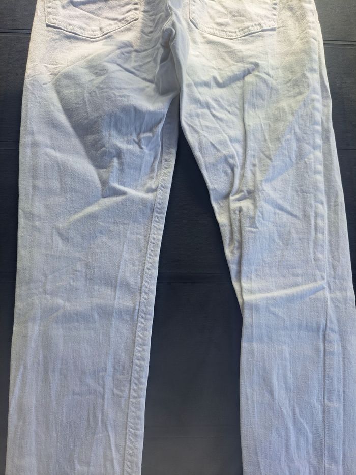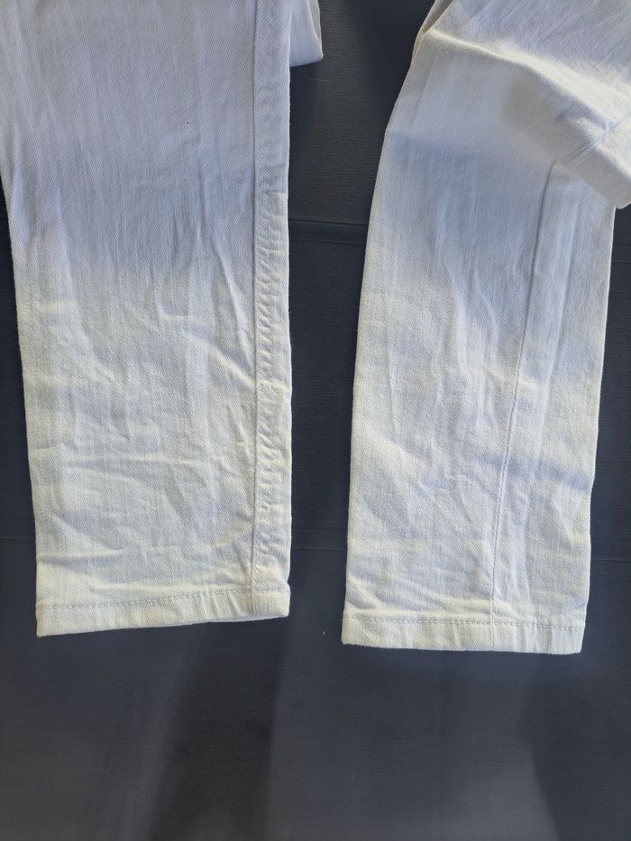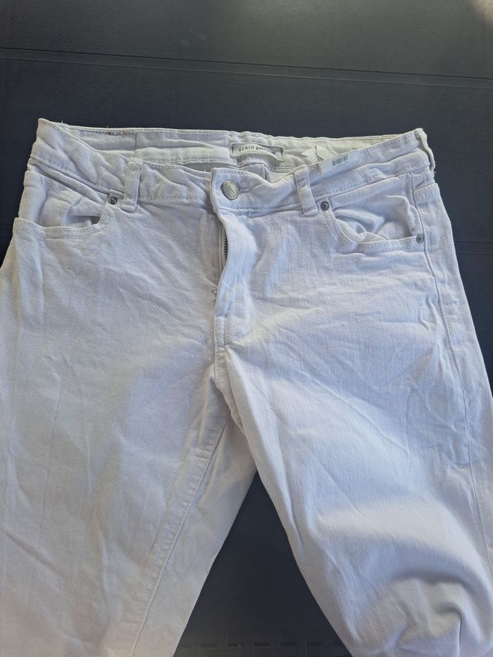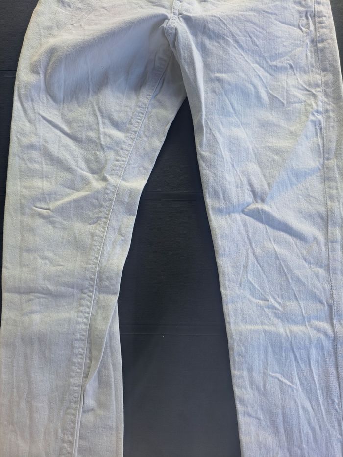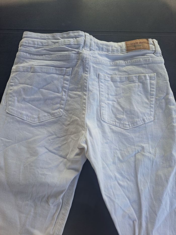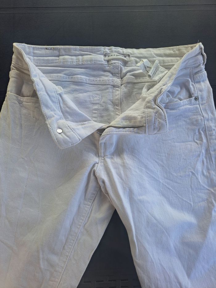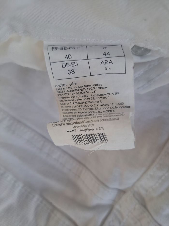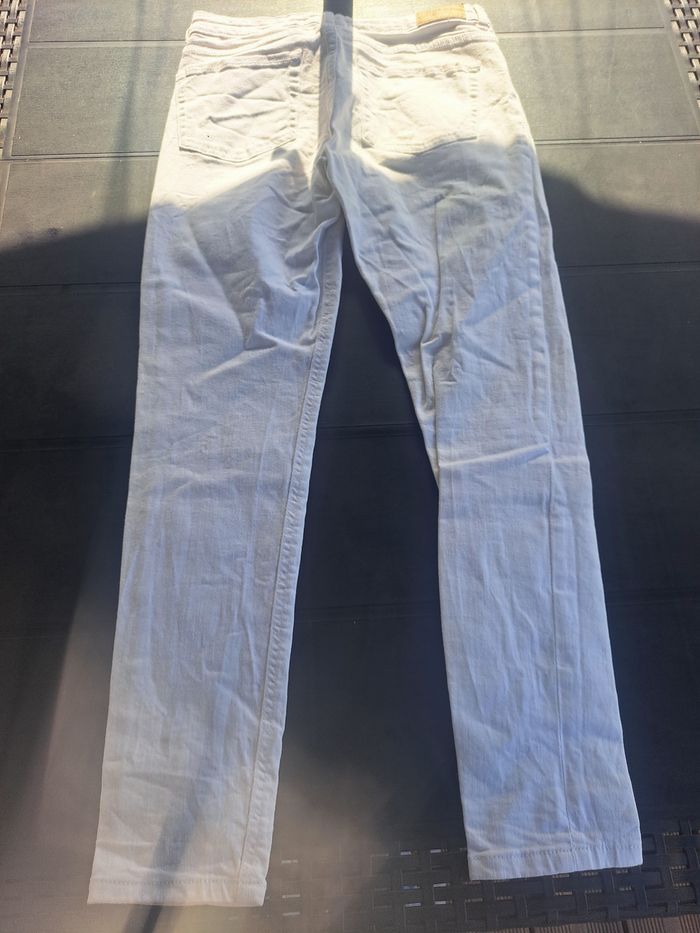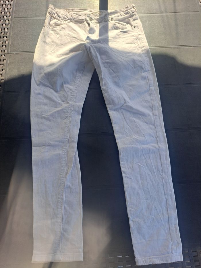 Porté. Ferme avec un bouton et une fermeture. 3 poches devant et 2 poches plaquées derrière. Pas de trou. Quelques minis tâches.