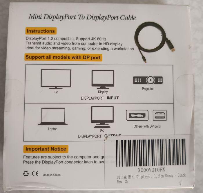 Câble Neuf 2m Mini display port vers Display port Support 4K 60Hz Audio Vidéo - photo numéro 3