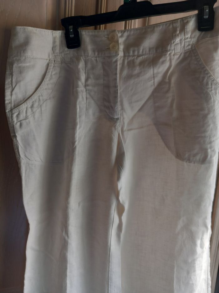 Pantalon femme Légèrement transparent Marque Patrice Breal Taille 42 Couleur beige Matière 100% lin Avec 2 poches Avec passage pour ceinture Fermeture zipper et boutons En très bon état Dimensions approximative 106cm de long : 43cm de large à la taille