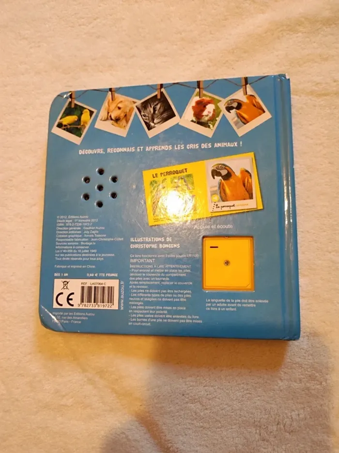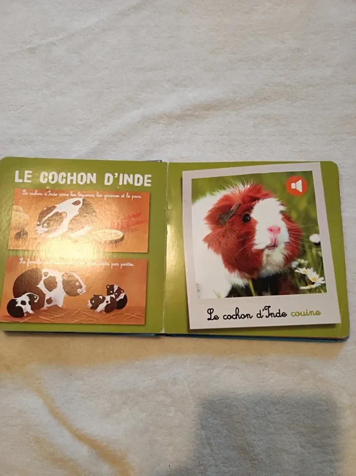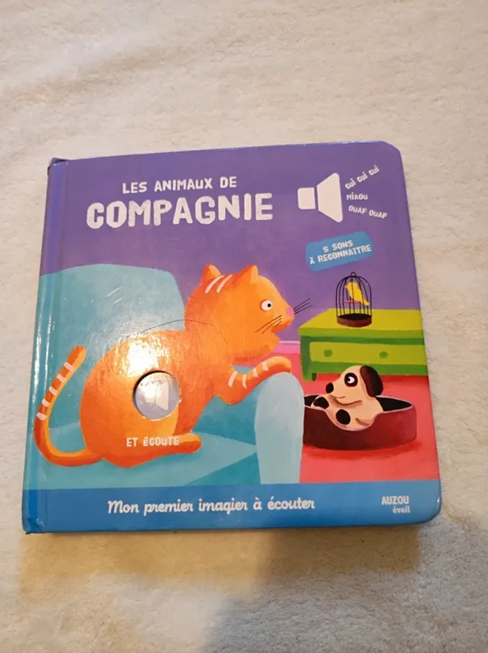 💫 livre sonore à partir de un an virgule page cartonnée, sur le thème des animaux de compagnie 💫 5 animaux à découvrir : le chat, le chien, le cochon d'inde, le perroquet, le canari. Pour chaque animal, bébé peut appuyer sur le haut-parleur et découvrir le cri de l'animal. 💫 Fonctionne avec trois piles boutons LR1130, les piles sont incluses 💫 La dernière page est abîmée (voir photo) Pour mes autres jouets ou livres : #joaltjouet #joaltlivre Penser à retirer les filtres _________ #livre #livresonore #animal #animaux #compagnie #sonore #bebe #chat #chien #découverte