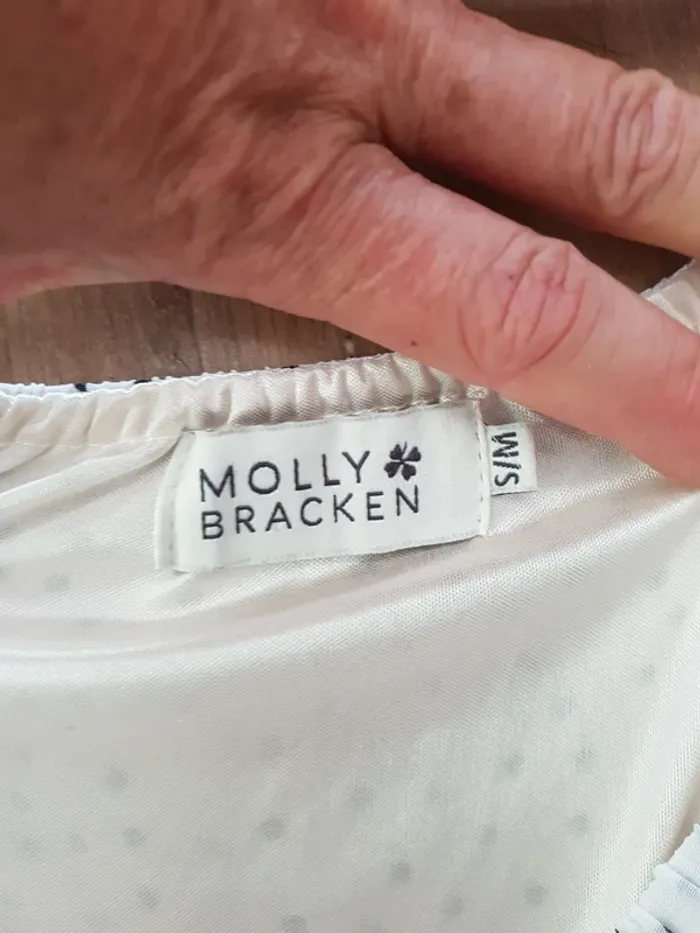 Jolie robe légère blanche à pois gris, Molly Bracken taille S/M