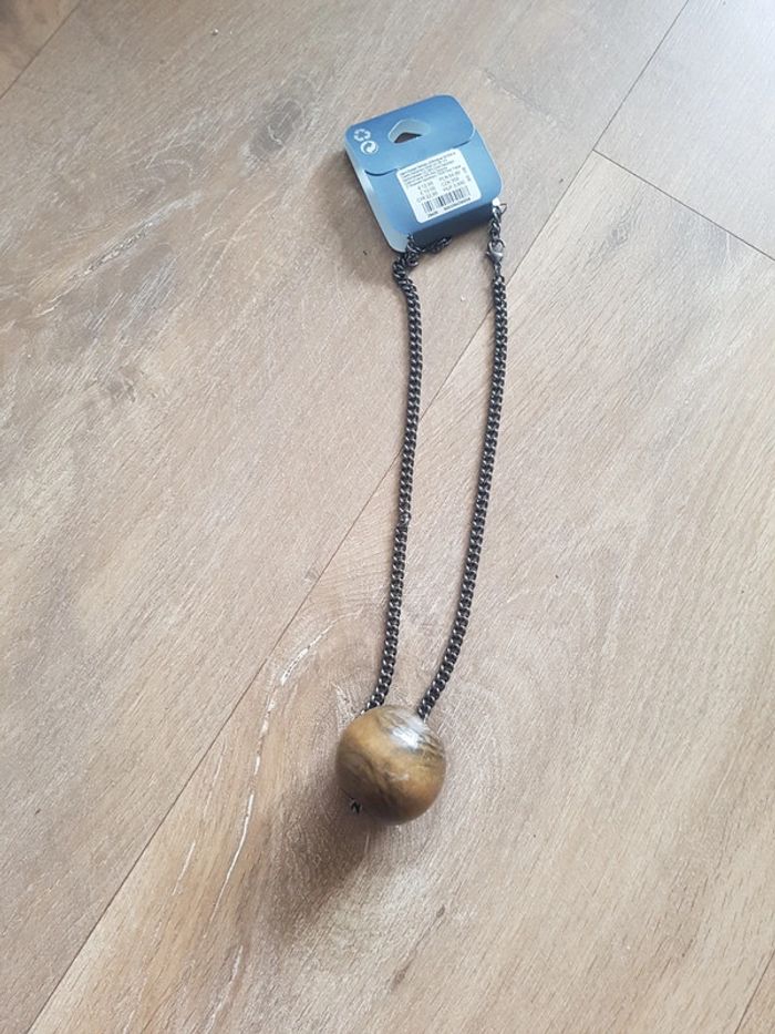 Collier fantaisie Claire's Chaîne anthracite avec perle en bois Valeur 12,99€ #aline_38_bijoux