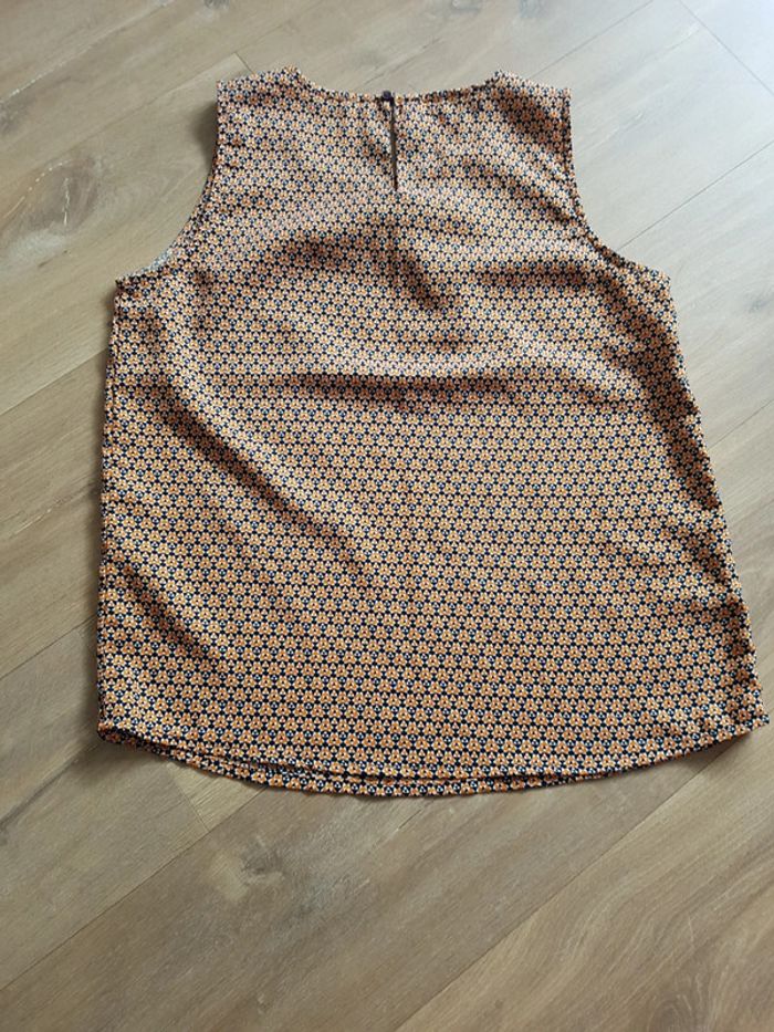 Débardeur Kiabi taille M Motif orange, bleu marine et blanc Légère décoloration aux aisselles mais ne se voit pas porté, voir les 2 dernières photos!