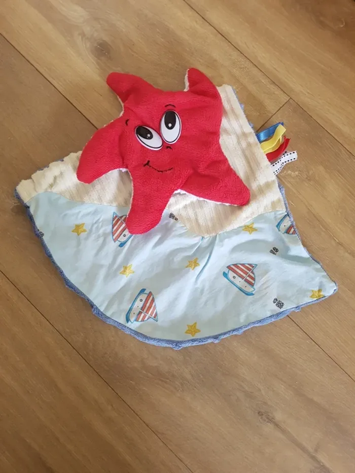Adorable doudou plat avec étoile de mer Différentes matières à toucher #aline_38_peluche