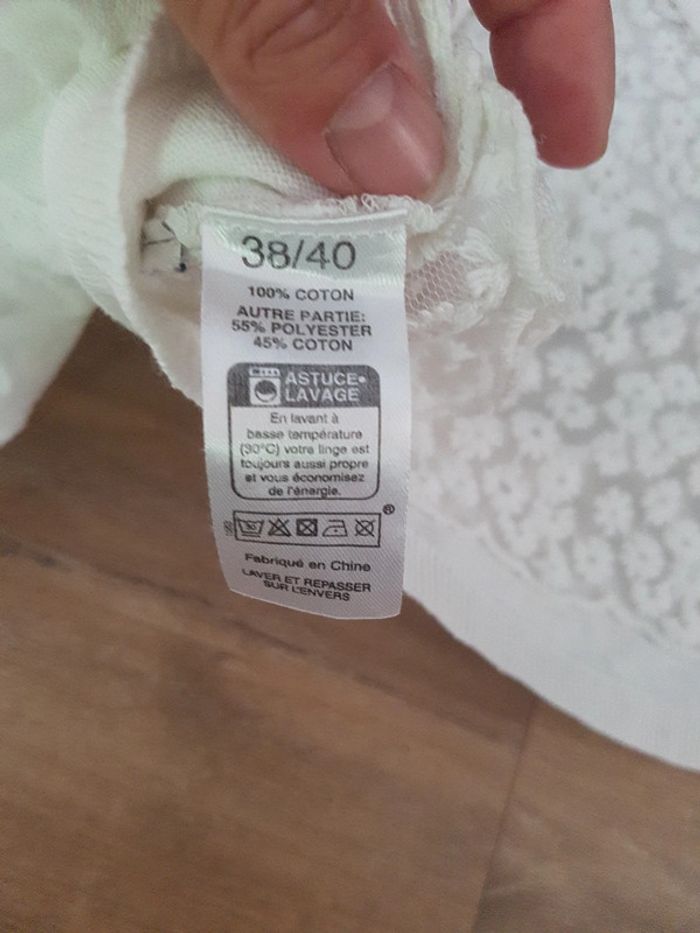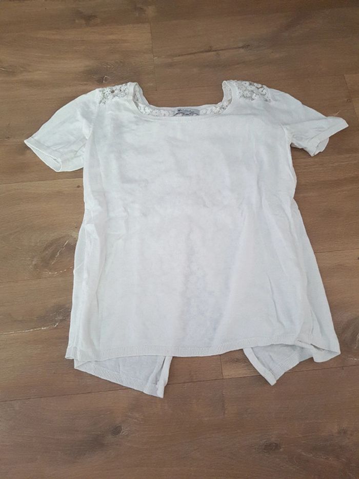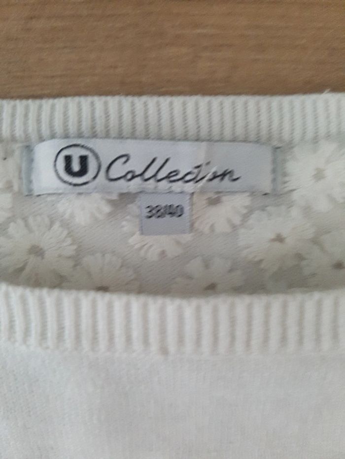 T-shirt blanc U collection taille 38/40 A volets dans le dos transparent à fleurs blanches