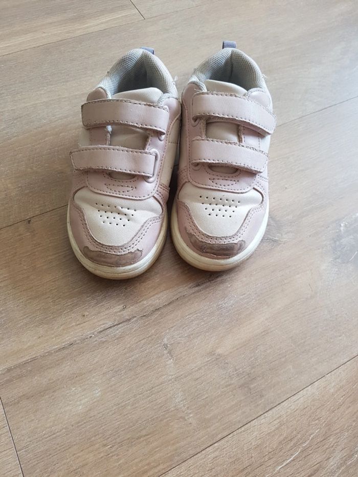 Paire de basket Kiabi en taille 24 Très confortables! Les scratchs tiennent super bien! Rose et rose claire avec une touche de bleu aux talons Usées sur le devant mais peuvent encore largement être utilisées pour les sorties vélo, pour éviter d'en abîmer d'autres! #aline_38_chaussures