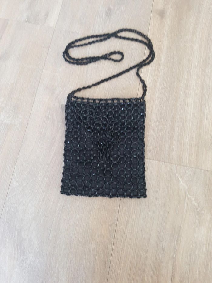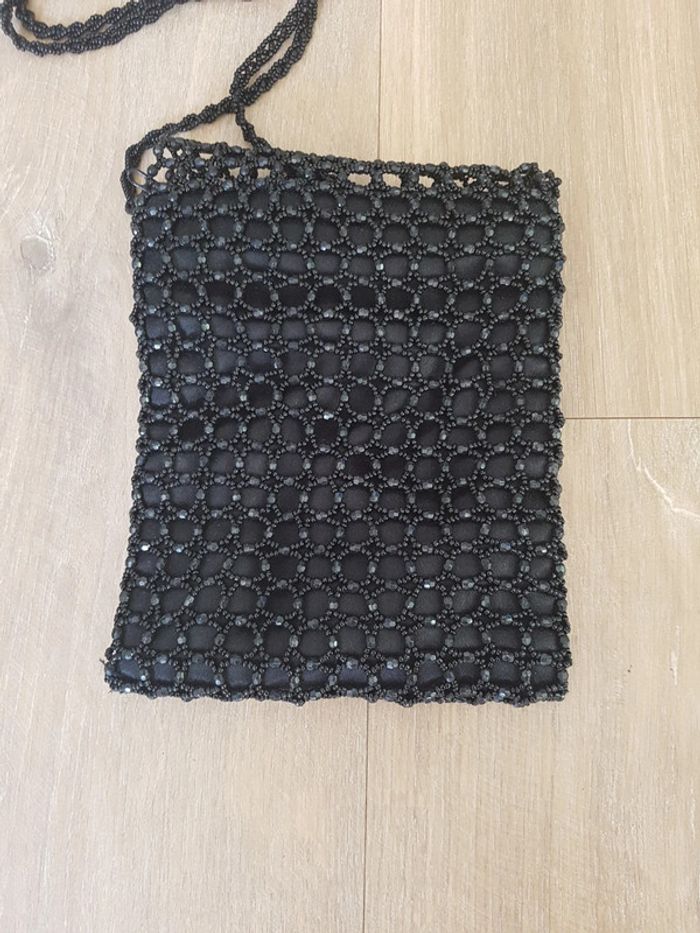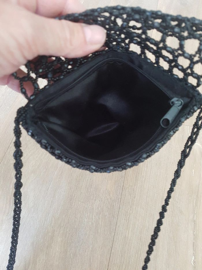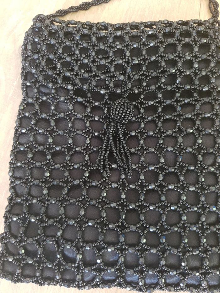Magnifique pochette en perles noires, jolis reflets brillants, fermeture éclair ok! #aline_38_sac