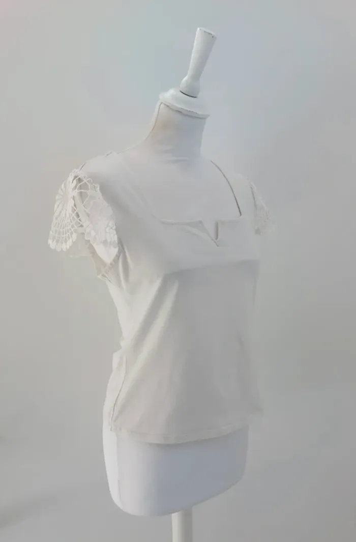 T-shirt top manches courtes brodées blanc taille M - photo numéro 2