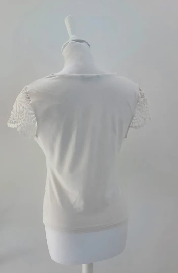 T-shirt top manches courtes brodées blanc taille M - photo numéro 5