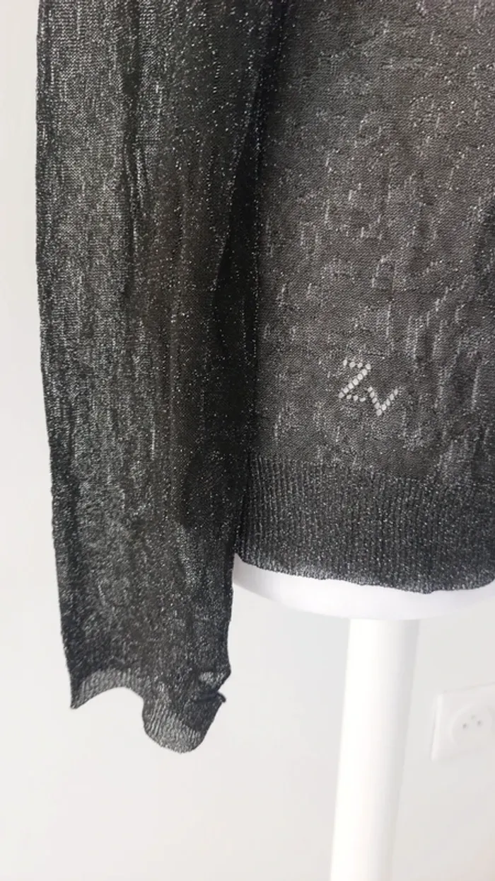 Top manches longues en transparence avec paillettes argentées Zadig & Voltaire M - photo numéro 7