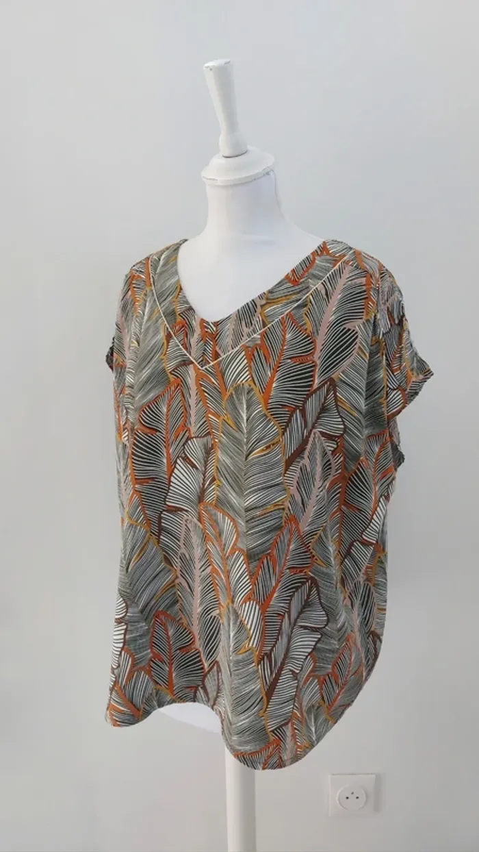 Blouse fluide imprimée manches courtes col v 46 - photo numéro 1