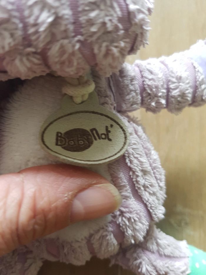 Doudou BabyNat' hippopotame violet Petite tâche au revers du carré, voit dernière photo