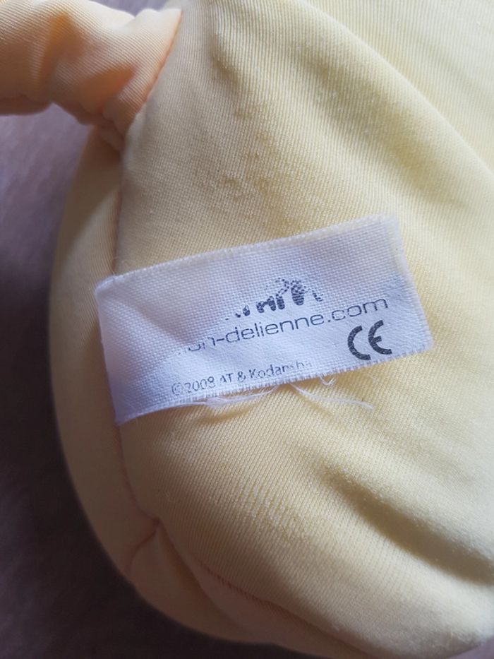 Peluche Barbapapa jaune Leblond delienne rempli de petites billes de polystyrène, garde un peu la forme qu'on lui donne! Il a des aimants dans les mains Environ 20 x 12 cm