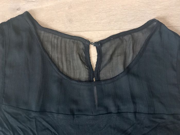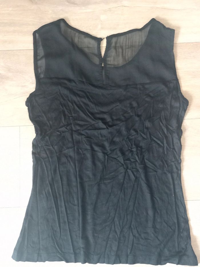 Joli débardeur légèrement transparent sur le haut. Manque le bouton derrière, voir dernière photo, mais je trouve plus joli sans!