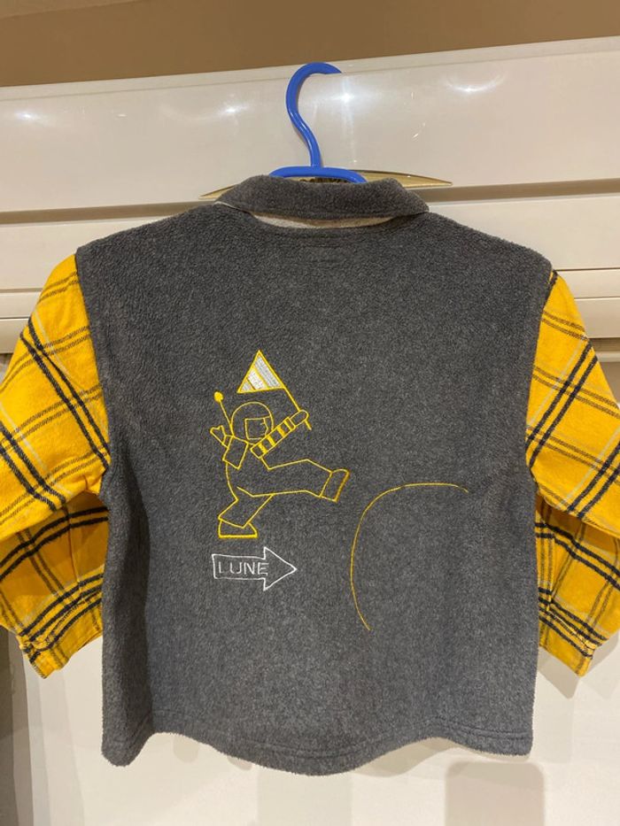 Gilet gris et manches longues jaunes à carreaux. Marèse