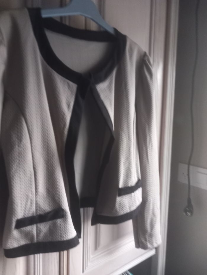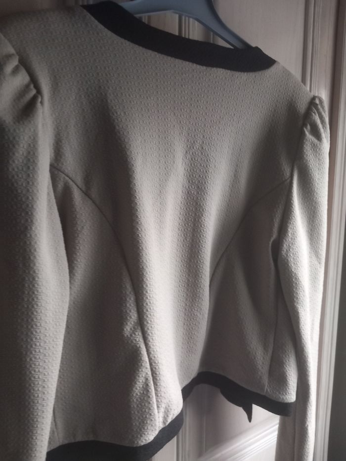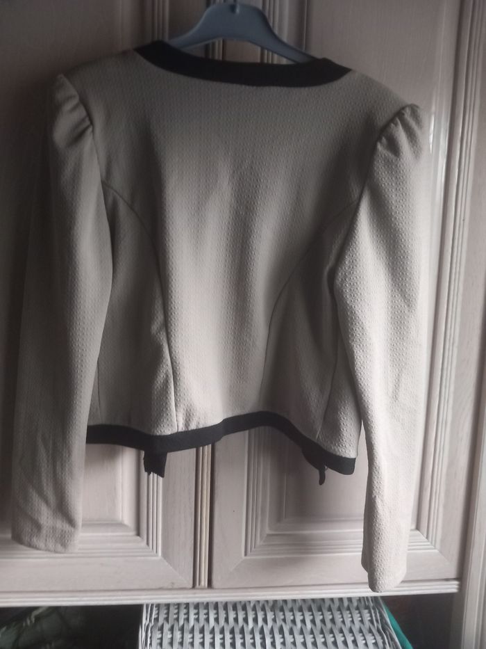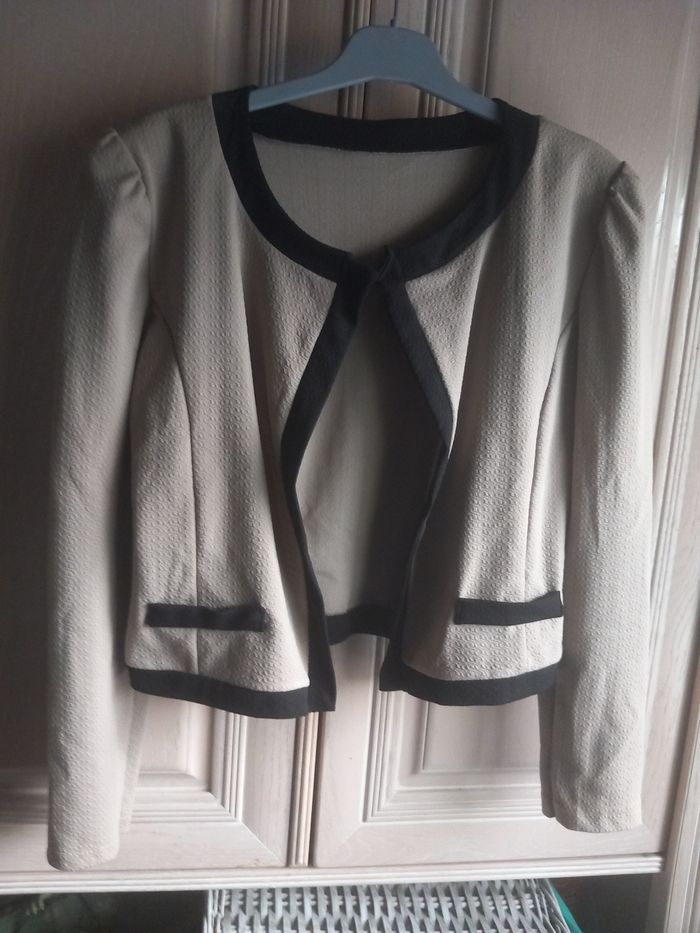 Veste courte femme Marqué made in italy Matières 95% polyester et 5% elasthane Taille XL Couleurs marron et noir Motifs côtelé Avec épaulettes Dimensions approximative 49cm de long : largeur sous aisselles 44cm : largeur d'épaules 44cm : longueur de manches 62cm En très bon état