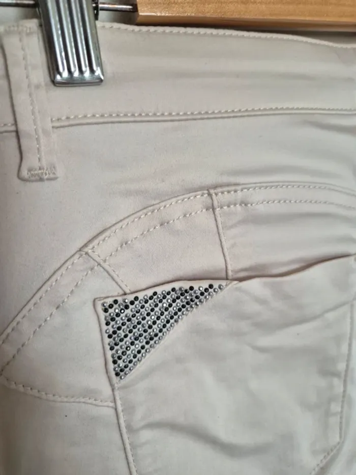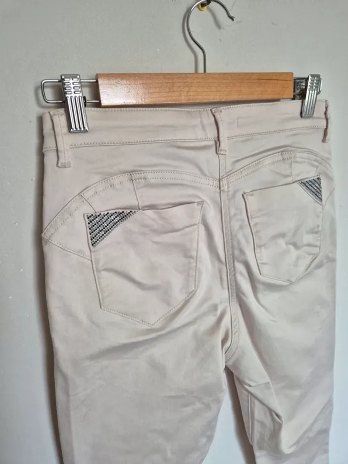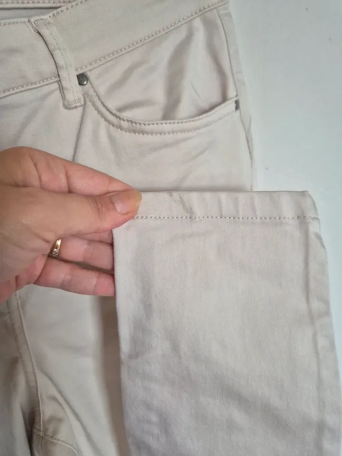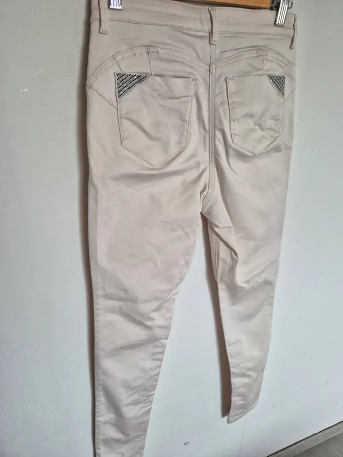 📌 Lot 20% de remise pour l'achat de 5 articles, suite ... Pantalon beige clair, slim, dimension : ➡️Largeur taille 38 cm ➡️Longueur total 99 cm ➡️Longueur entrejambe bas 77 cm ➡️67% coton 37% polyester 3% élasthanne ⭐ Une légère trace noire sur le bas du pantalon sinon Excellent état ✈Envoi rapide des colis 💗 Abonnez vous à mon profil, nombreux articles ajoutés régulièrement ! 🌸 Tapez Laetitresors pour voir mes annonces #laetitresors_pantalon.38 #pantalon #beige #breal #uni #beige #clair #slim #brillant #poche #bijoux #perle #laetitresors