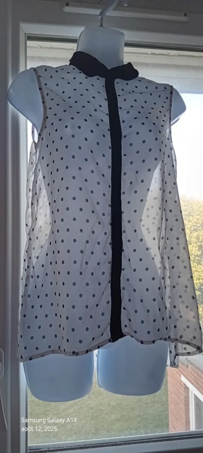 Blouse légère sans manches à pois avec boutons noir et blanc femme 38 k.woman - photo numéro 1