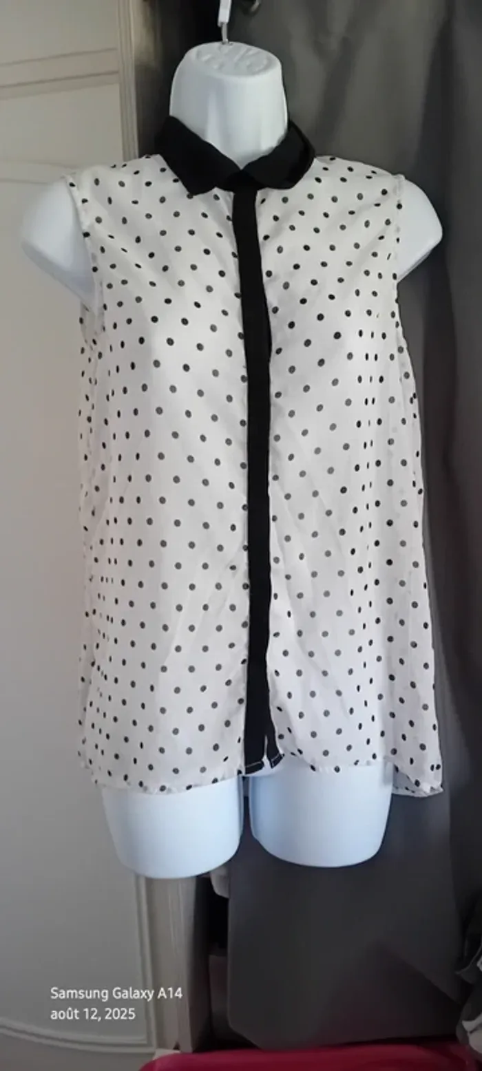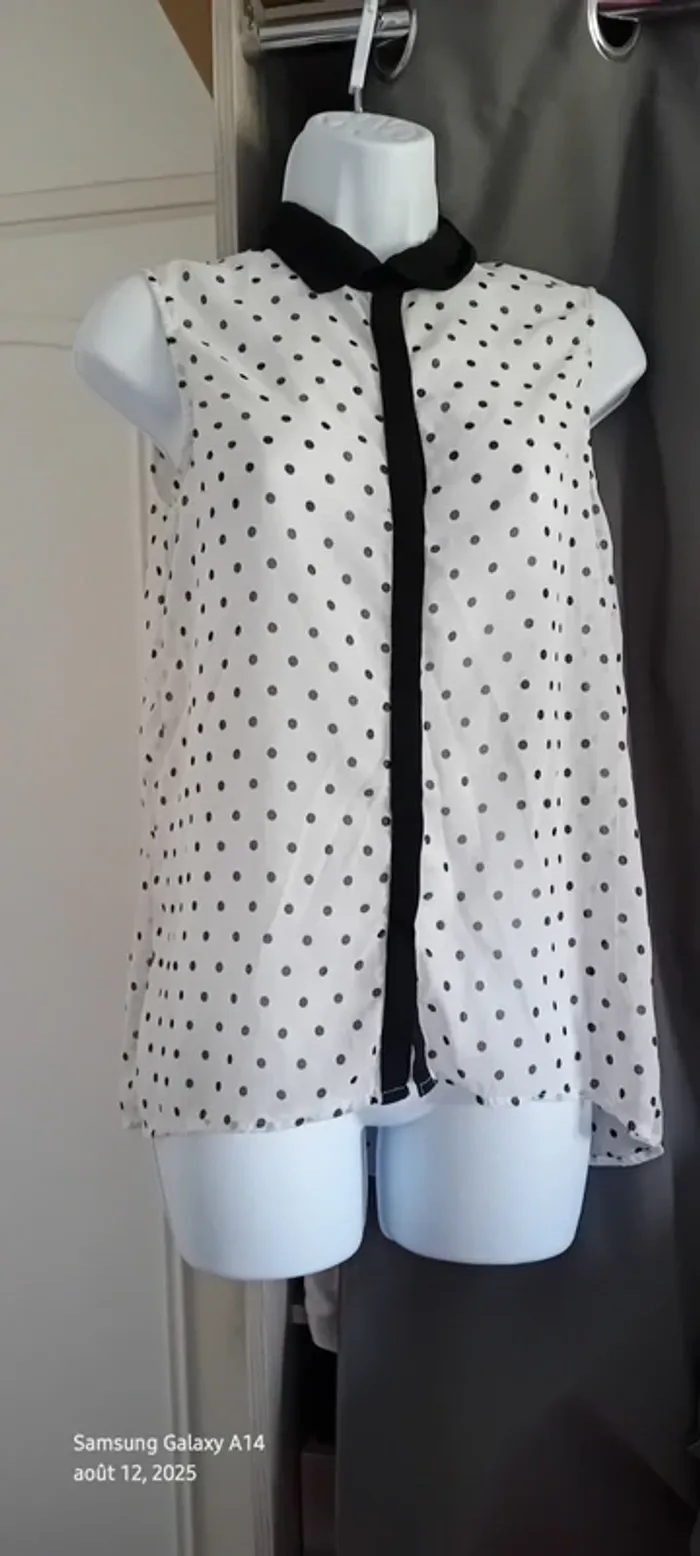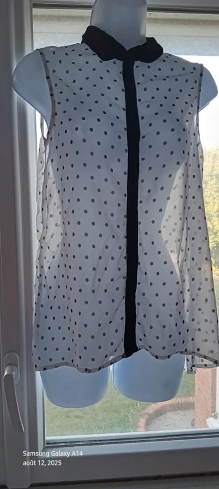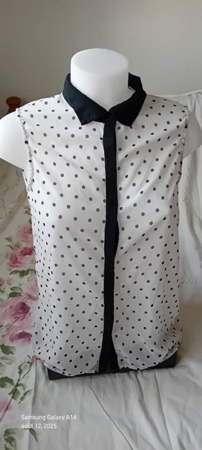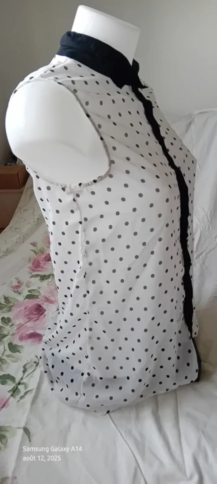 Blouse légère sans manches à pois avec boutons noir et blanc femme 38 k.woman