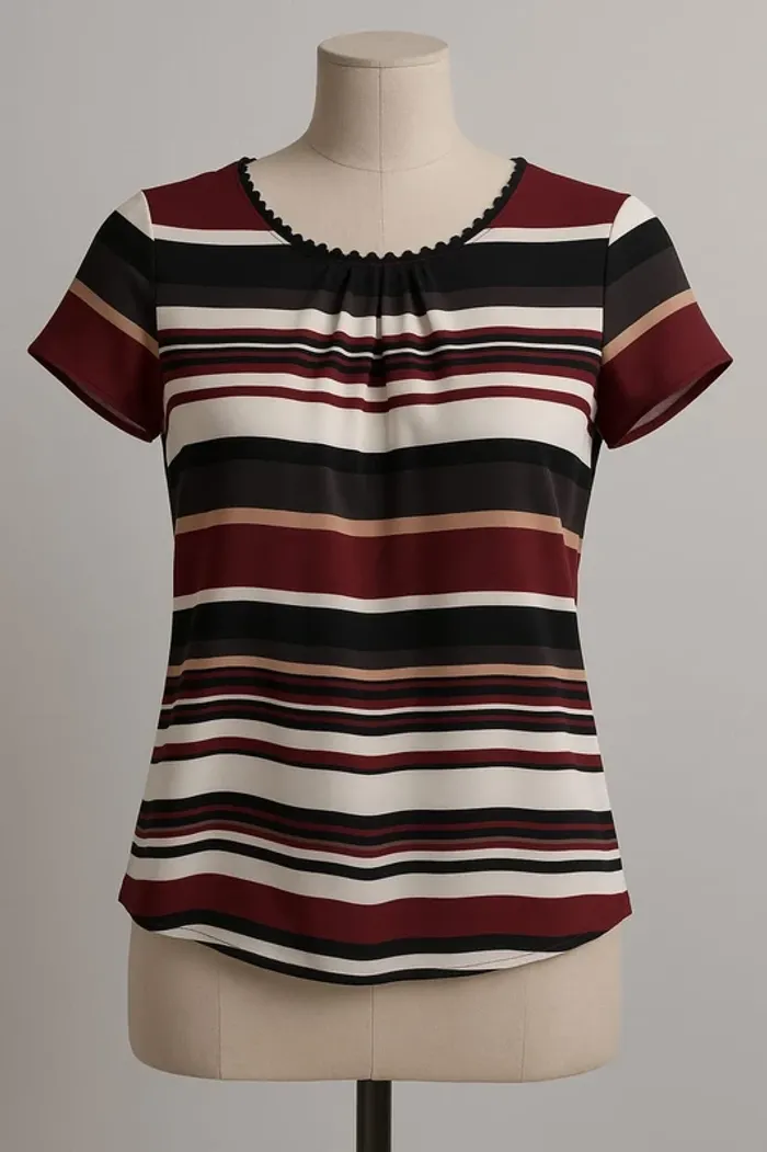 Tunique manche courte rayée noir gris bordeaux blanc beige S . Oliver Taille 34