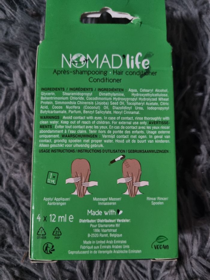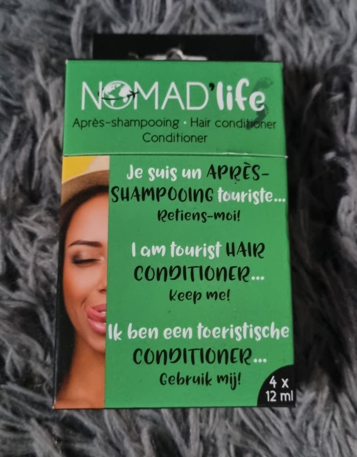 Après-shampoing vegan pour voyages ou vacances,marque Nomad'life,4 sachets.