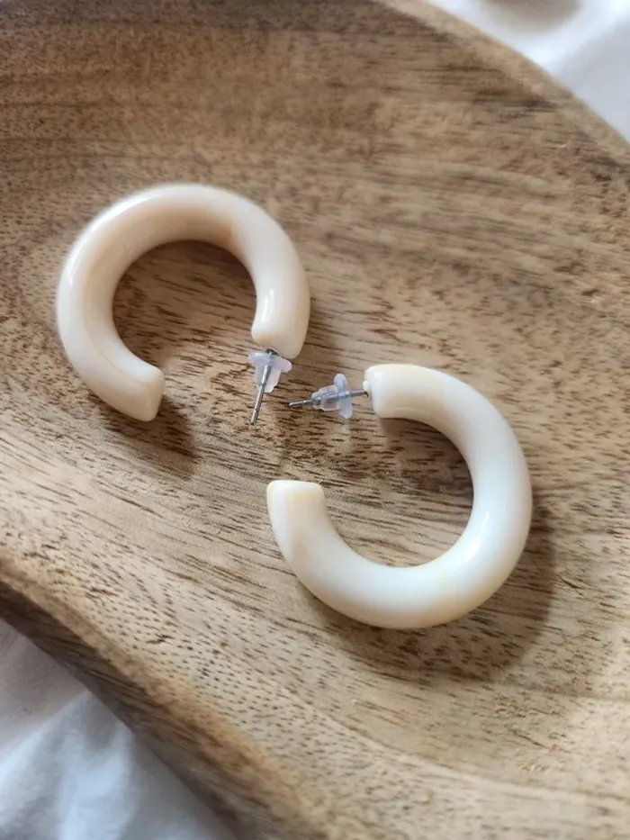 Anneaux créoles crème marbré - photo numéro 2