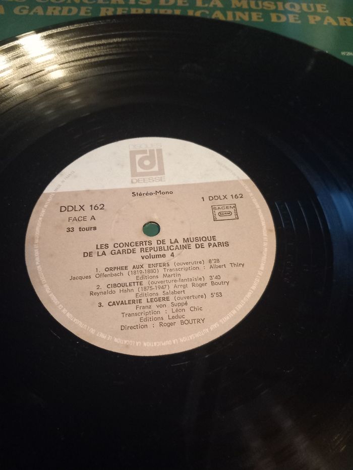 Disque vinyle 33 tours Artiste : les concerts de la garde républicaine de Paris Titre : volume 4 Face A 3 titres Face B 4 titres En bon état juste la pochette abîmer voir photos
